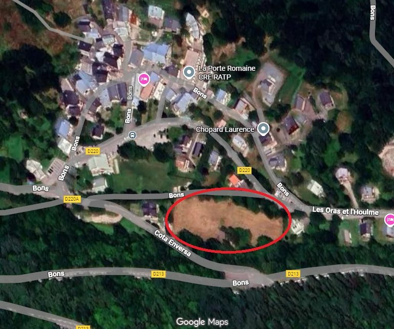 Terrain constructible de 666 m² situé dans le hameau de Bons, au sein d’un ensemble de cinq lots (lot n°5), à moins de 10 minutes en voiture de la station des Deux Alpes.